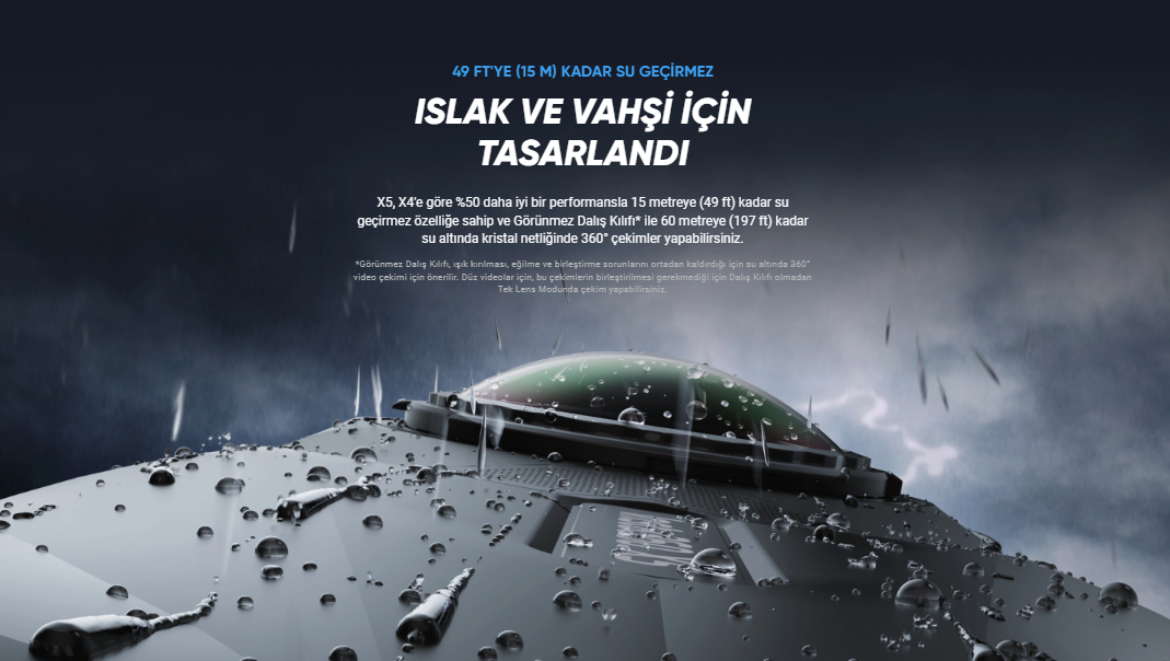Insta360 X5, 360 derece çekim yapabilen, yüksek çözünürlüklü (5.7K) ve profesyonel bir aksiyon kamerasıdır. Akıcı görüntü kalitesi, güçlü stabilizasyon (Akış Sabitleme) ve modüler tasarımıyla dikkat çeker. Suya dayanıklı olmamakla birlikte, aksesuarlarla her türlü macera için uygun hale getirilebilir. Spor, seyahat, vlog, belgesel ya da VR içeriği hazırlamak isteyenlerin adeta imdadına yetişen aksiyon kamera modeli, sahip olduğu teknik özellikler ile heyecan yaratıyor.